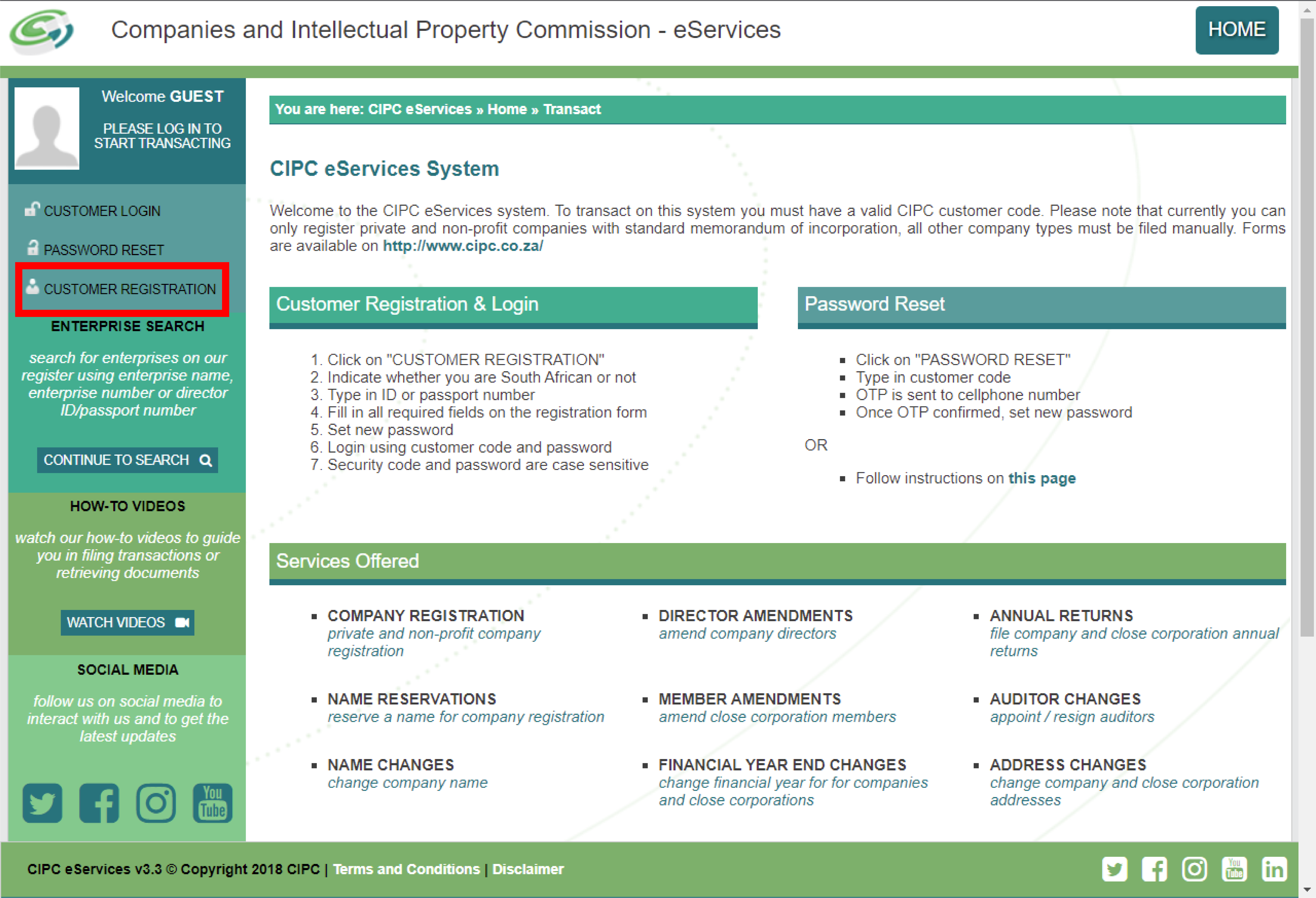 How to register as a customer on CIPC.